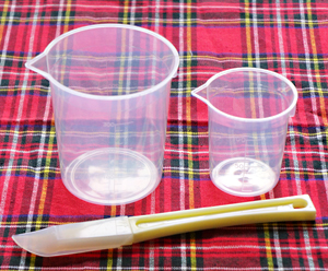 計量カップ (100mlと300ml) と、ゴムヘラとのセットもあります。